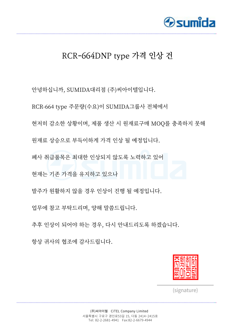 SUMIDA RCR664DNP Type ´Ü°¡ Àλó ¾È³» (2023³â 4¿ù 12ÀÏ ºÎ)
