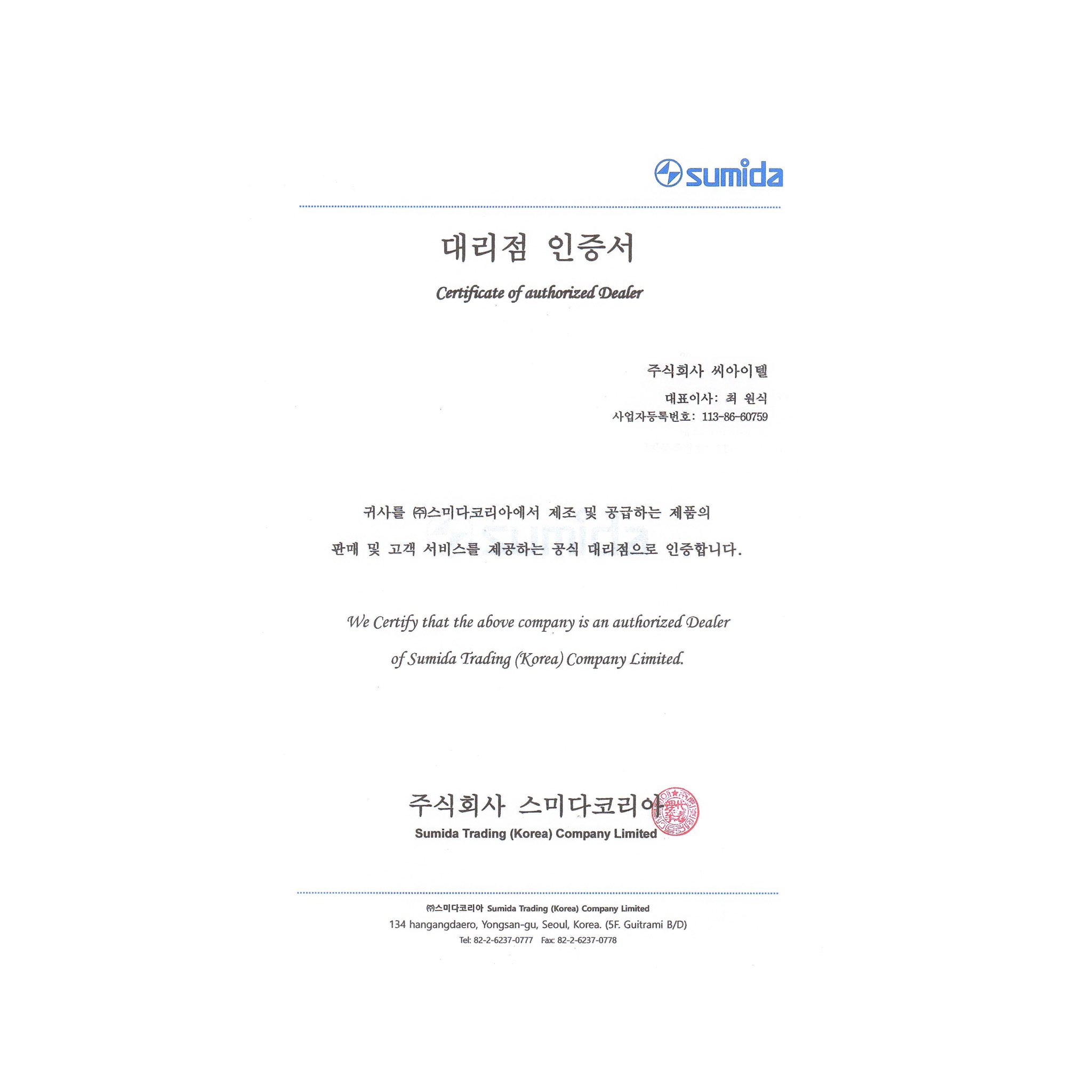 SUMIDA °ø½Ä ´ë¸®Á¡ ÀÎÁõ¼ (2005³â~ÇöÀç)